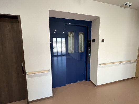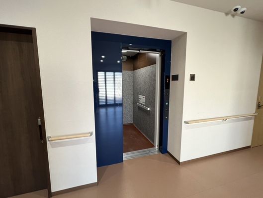 手すり付きで安全に配慮されたエレベーターです。移動の際にも安心してご利用いただけます。