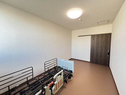 ゆとりある居室で、個々の生活スタイルに合わせた空間作りが可能です。落ち着いた色合いのドアが、安らぎの雰囲気を醸し出しています。