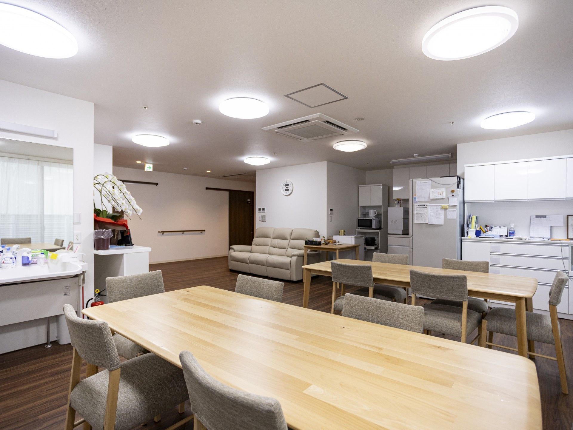 在宅に近い環境でゆっくり過ごしていただけるよう、個室仕様のお部屋と居心地よい共有空間をご用意いたしました。お食事提供をはじめとした生活支援、介護・医療のケア体制を整え、ご自分らしく過ごせるように支援いたします。
