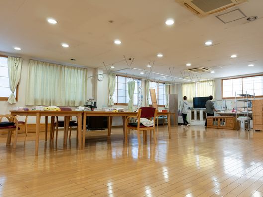 ホーム内にはデイサービスセンターが併設。入浴や食事、排泄の介助などを受けられるほか、利用者様同士の交流を楽しめます。一般的な浴室のほか、機械浴も設置されているため、車いすの方も安心して入浴することが可能です。ホーム入居者様のお食事は、栄養面とおいしさに配慮された手作り料理。入居者様の身体状況に応じて、きざみ食やペースト食に変更することもできます。