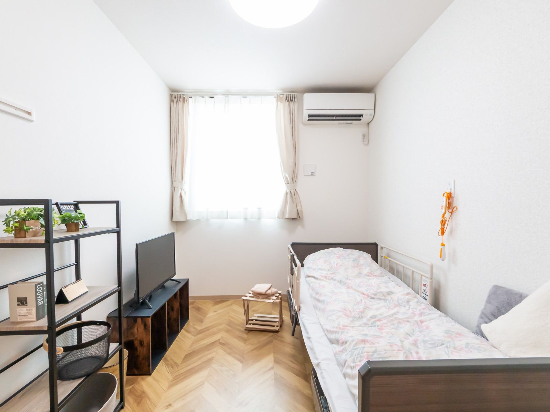 窓からの自然光が心地よいベッドスペースです。リラックスできる空間で、快適にお過ごしいただけます。