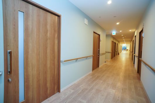 手すりを設けた明るい廊下は、歩行に配慮されており、安心してお過ごしいただけます。