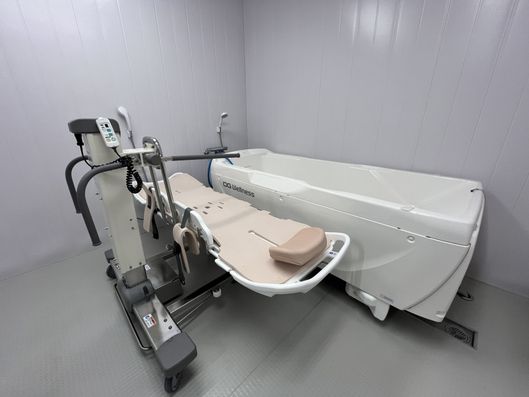 「HIBISU下野」は居室を含む館内全域バリアフリー設計です。居室やトイレのドアはスライド式で開け閉めを楽にでき、車いすの方もゆとりを持って行き来ができる幅がございます。廊下の幅も広く、手すりが付き、移動がスムーズです。おひとりで入浴ができない方はスタッフがお手伝いし、お身体を動かすことが難しい方も安全に入浴できる機械浴も導入しております。車いす対応のトイレもあり、おむつに頼らず自立した生活を長く続けられるでしょう。