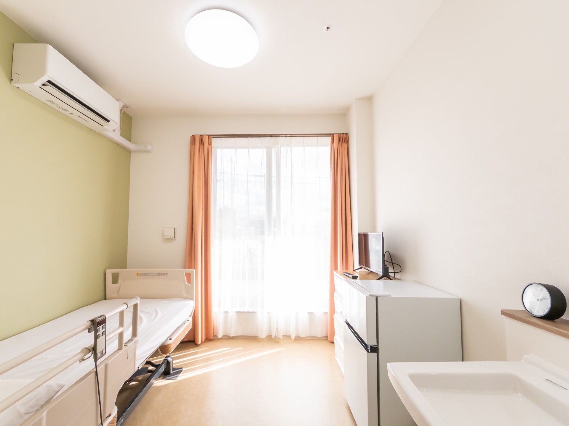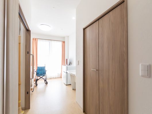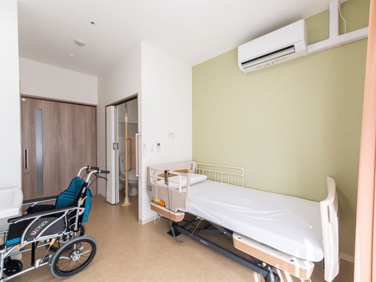 介護度に応じてご利用いただける個室がございます。ユニットバス完備で入浴も楽々です。温水洗浄暖房便座のトイレでプライバシーに配慮いたしました。バリアフリー設計で移動も楽々な上、居室内に洗面台を設置するなど、生活の質の向上を目指しております。介護サービスは24時間体制で、介護スタッフが手厚くサポートいたします。