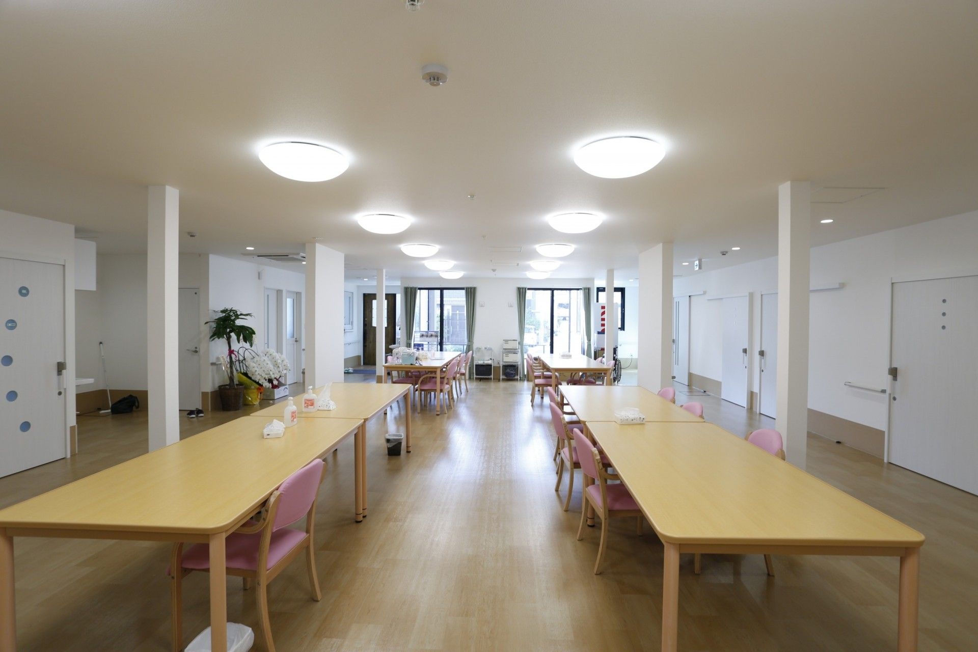 • 多目的室 明るい空間で、テーブルを囲んで楽しい時間を過ごせます。車椅子でも移動しやすい設計です。