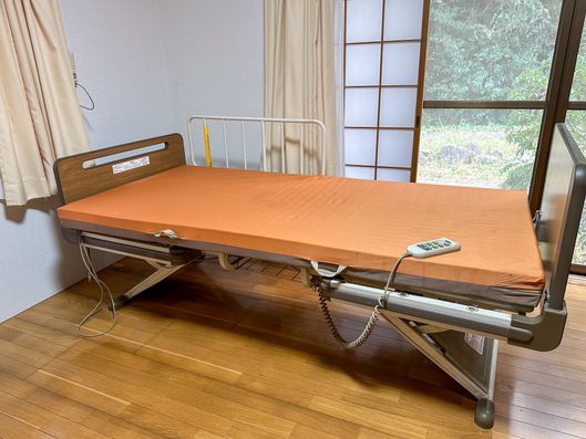 「ふれあい介護ホーム母家」はバリアフリー設計を取り入れた平屋建ての建物で、車いすや歩行器をご利用の方も自走が可能です。周りに背の高い建物がなく日当たりがいい場所にあるため、館内のどこにいても明るく、気持ちよくお過ごしいただけるでしょう。お部屋はお一人用とお二人用があり、いずれもベッドやエアコン付きです。お二人用のお部屋はカーテンで仕切ることができ、プライバシーも守られます。