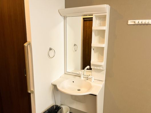 「ナーシングホーム ケアリール各務原」は全室18㎡以上を確保し、洗面所や手すり付きのシャワートイレ、エアコン、照明とカーテンが完備されております。広い収納スペースもあるため、お持ちの衣類や身の回りの荷物も楽に収納していただけるでしょう。家具や家電はご愛用のものをご持参ください。ベッドはレンタルも可能です。居室には緊急通報装置が付き、いつでもすぐにスタッフが駆け付けます。