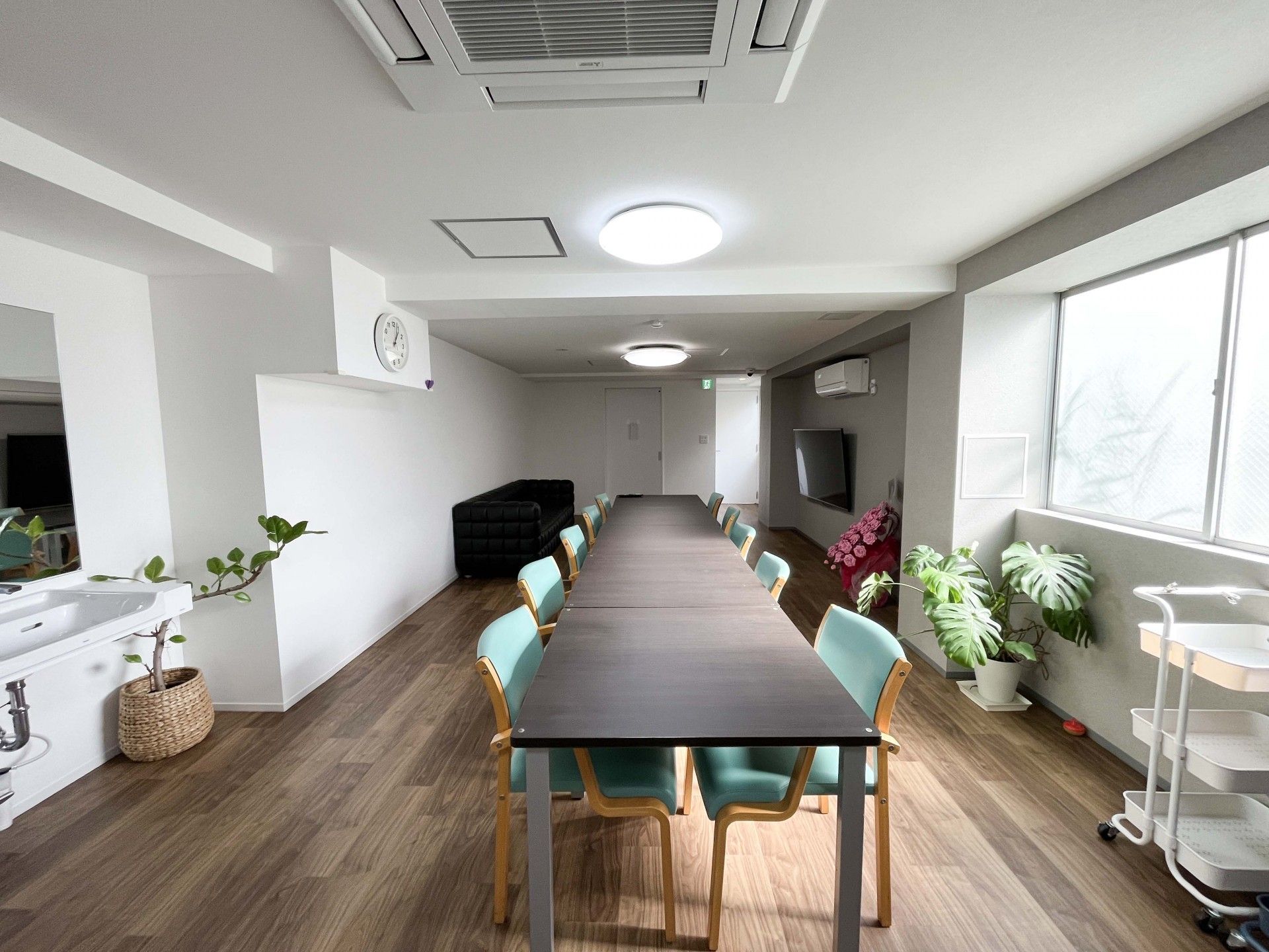大きなテレビが設置されており、皆さんで集まって楽しい時間を過ごせる空間です。