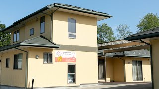 ゆったりとした敷地に佇む、落ち着いた色合いの建物です。明るく開放的な入口が、皆様を温かく迎え入れます。
