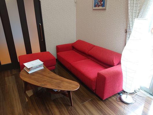ゆったりとしたソファが置かれた休憩スペースです。窓から自然光が差し込み、明るく開放的な雰囲気でお過ごしいただけます。