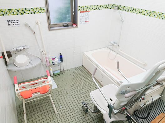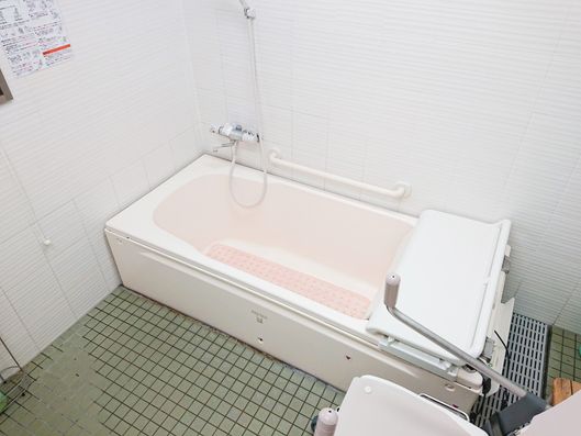 安全に配慮された入浴設備が整っており、ゆったりとした時間を過ごせる環境です。サポートが必要な方も安心してご利用いただけます。