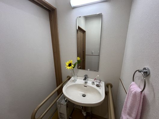 手すり付きで安全に配慮された清潔なトイレ空間です。快適にお過ごしいただける環境を整えております。