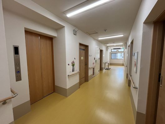 手すりが設置された廊下は、明るく清潔感があり、安心して歩行できる設計になっています。