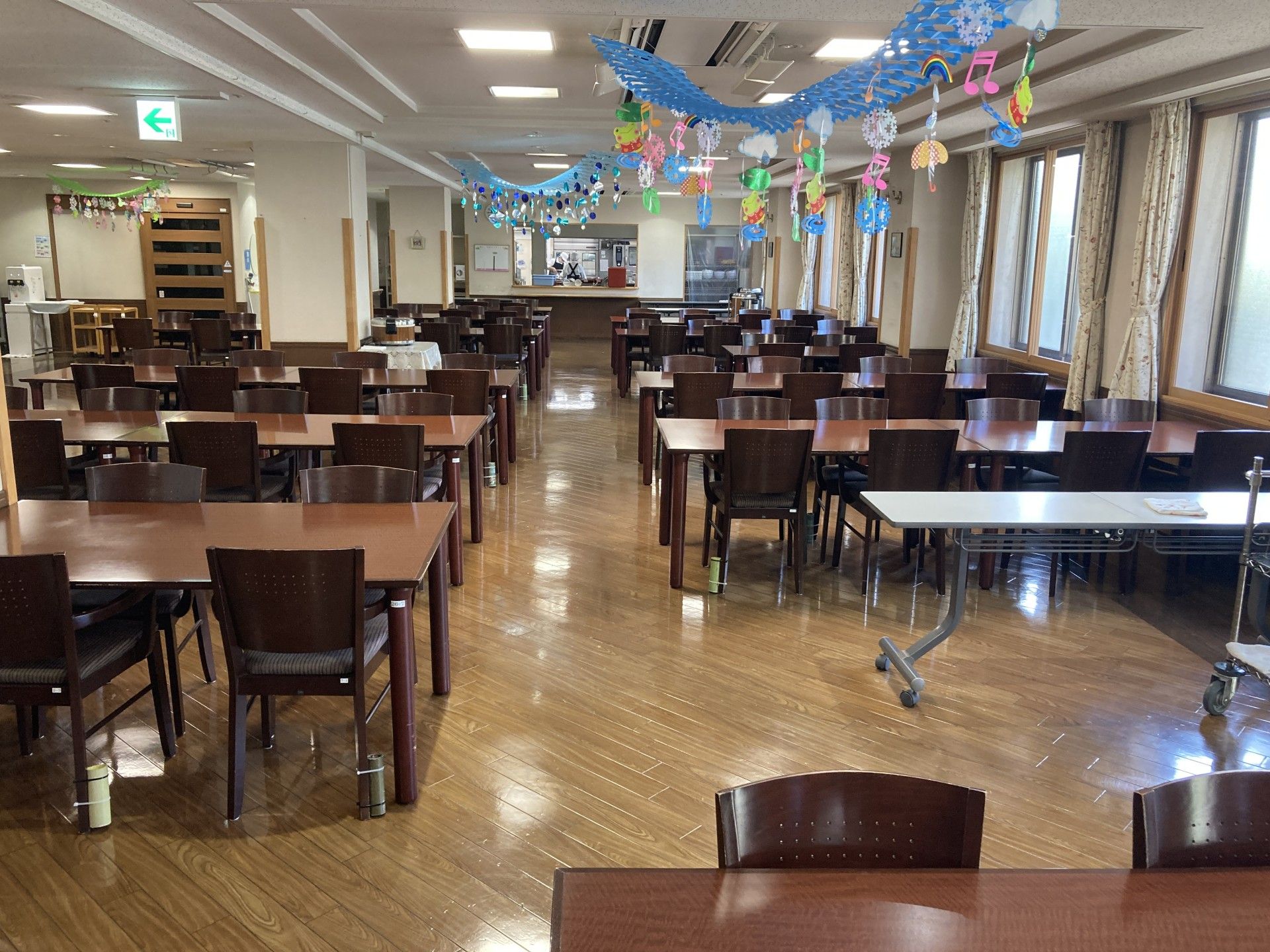 ケアハウスはごろもの共用スペースは、ご入居者様同士の交流を促進する設計です。ひろびろとしたロビーや100人入れる食堂、ゆったり会話ができる広い廊下を完備しています。各階には集会室があり、カラオケや園芸などの趣味活動を自由に企画・実施いただけます。とても広い大浴場も完備し、共同生活の中での譲り合いと助け合いを大切にしています。ご入居者様が地域のボランティア活動に参加したり、有償ボランティア制度を利用することもできます。趣味やクラブ活動もご入居者様主体で運営され、「やってみたい」を実現できる環境です。