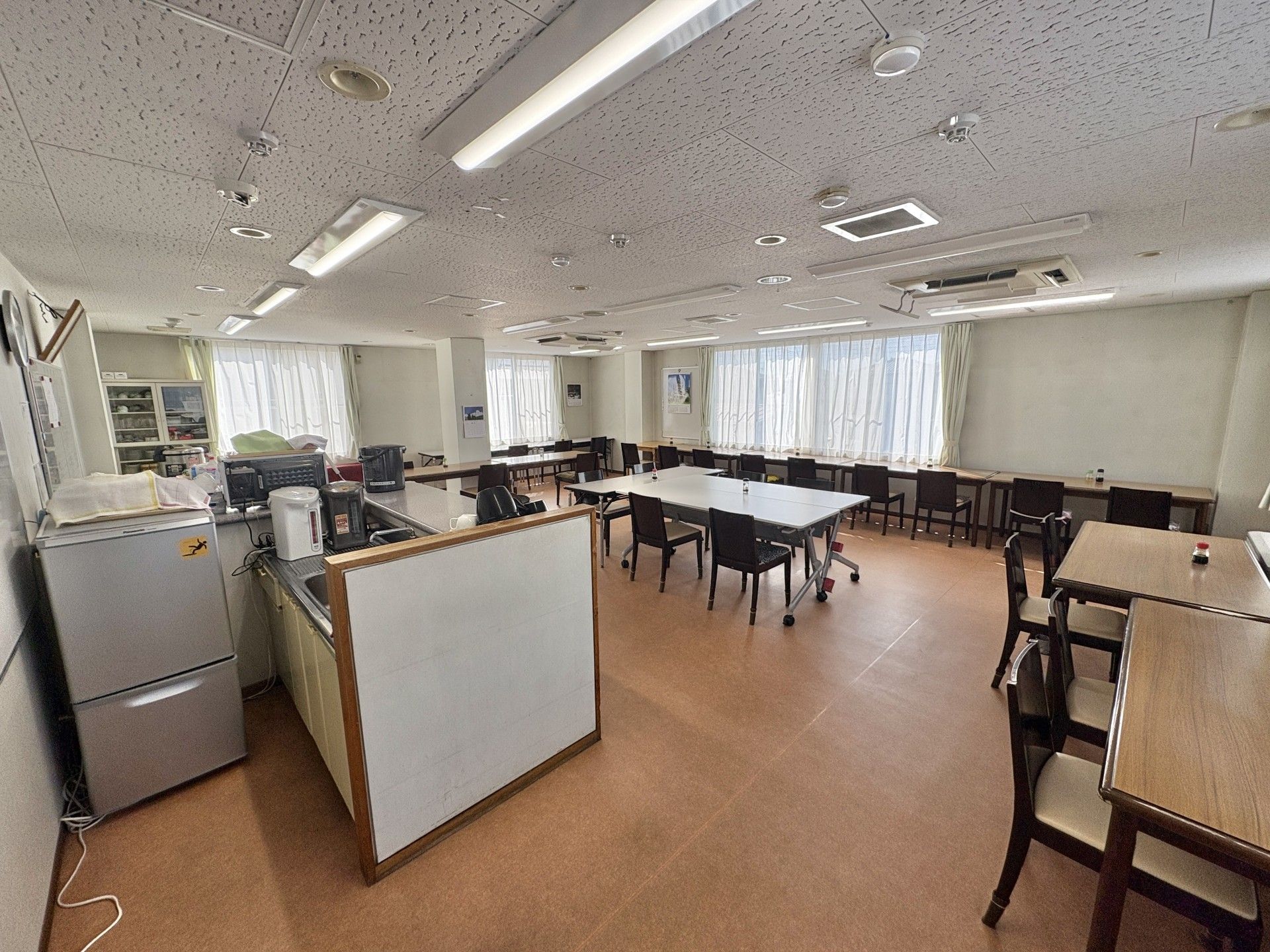 1. ご家族様にもご利用いただける食堂と喫茶スペースがあり、ゆっくりとお過ごしいただけます。