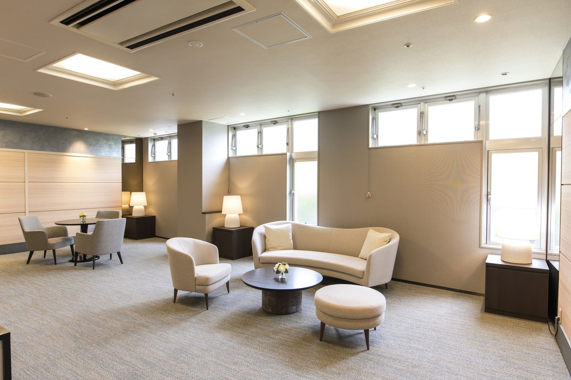 白を基調とした開放感のあるデザイン。ご家族との面会など自由にご利用いただけます。