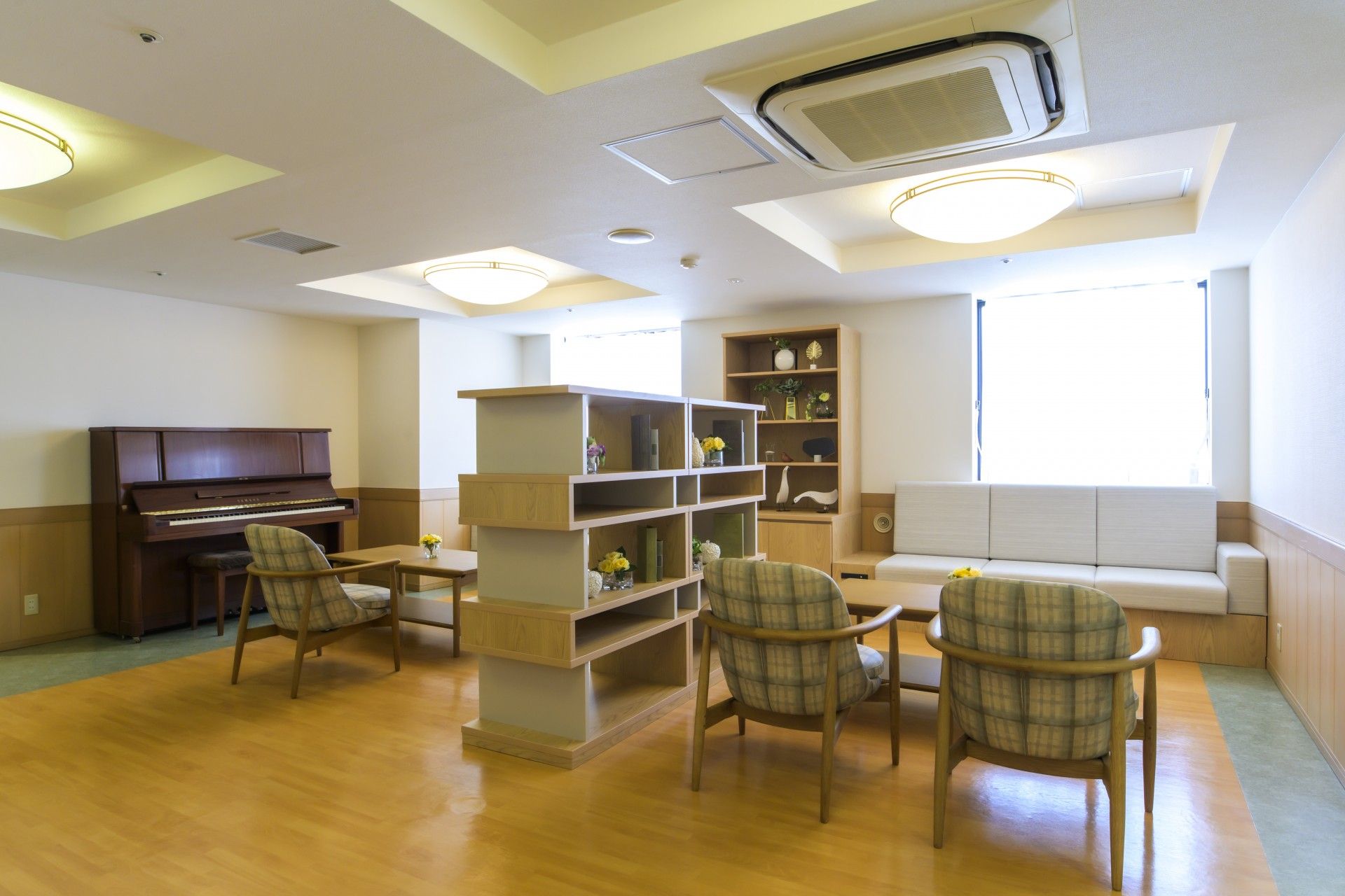 ご入居者同士の食後のひととき、読書やテレビ鑑賞など自由にご利用いただける空間です。