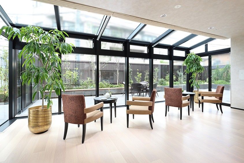 2025年7月1日オープン。介護職員を365日24時間、看護職員を365日日中配置*。緑豊かな街でお好きなことをしながら、「ご自分らしい」日々のご生活を。*介護にかかわる職員体制/2.5:1以上(週40時間換算)、夜間帯(22時~翌6時)最少時の体制は、介護職員1名です。看護職員(看護師または准看護師)を常勤換算(週40時間換算)で3名配置(満床時)。職員体制は、見直しなどにより変更する場合がございます。(写真はイメージです)