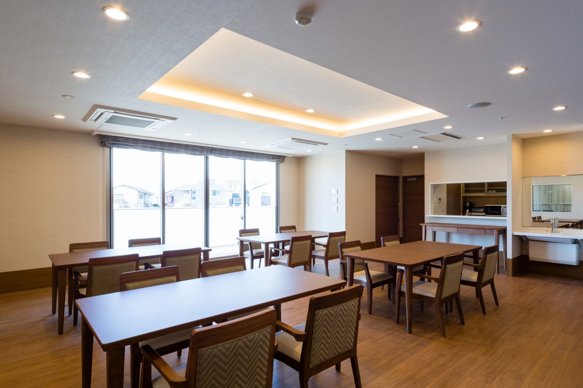 毎日のお食事だけでなく、日々のアクティビティや機能訓練などが行われ日常を仲間と過ごす空間です。
