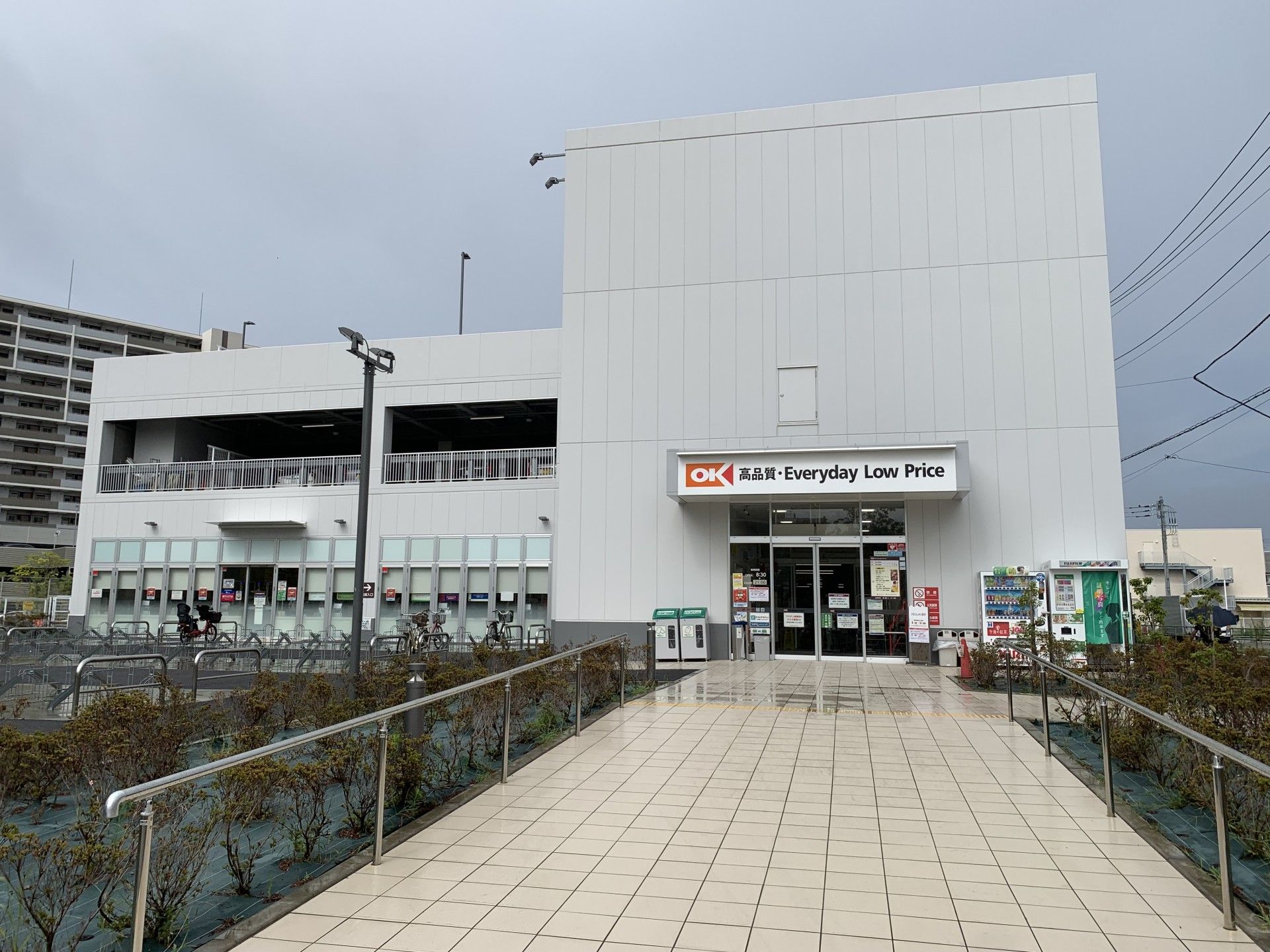 ホームの目の前にある便利なスーパーマーケット。生鮮食品から総菜、日用品まで揃います。