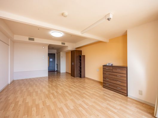 ゆったりとした空間の居室です。大きな窓からは自然光が差し込み、開放感あふれる環境でお過ごしいただけます。