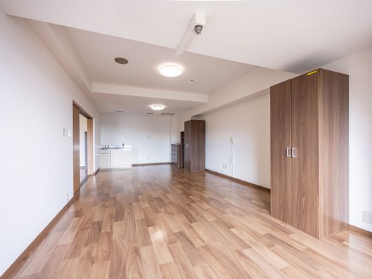 広々としたリビングスペースは、日差しが差し込む窓際で、ゆったりとした時間をお過ごしいただけます。テレビや食事のスペースも整っており、快適な日々をサポートします。
