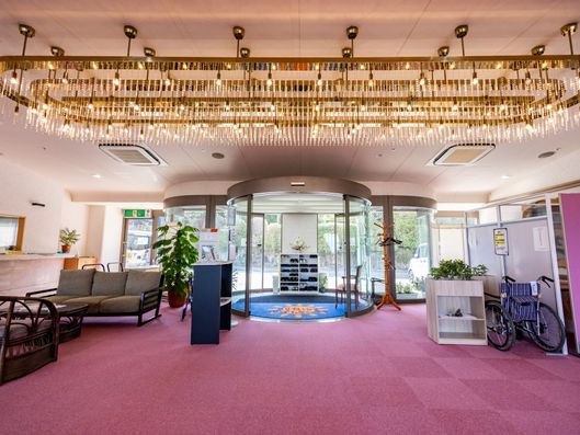 ゆったりとした入口は、訪れる方々を暖かく迎え入れます。花々が彩る清潔感のある空間で、安心してお過ごしいただけます。