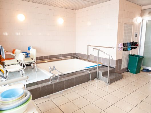 広々とした明るい入浴スペースです。様々なニーズに対応したバリエーション豊かな浴槽が揃っており、安心してご利用いただけます。