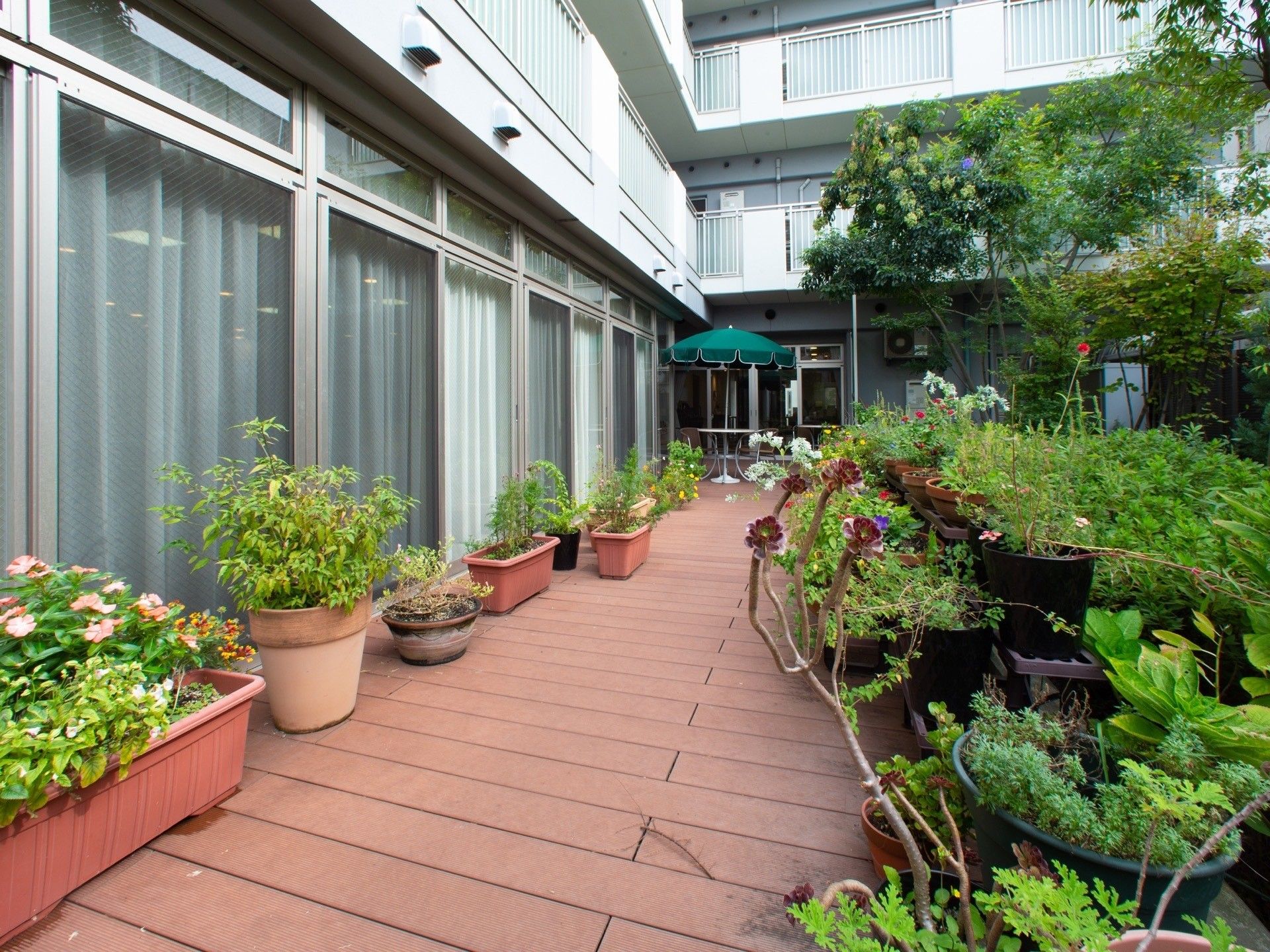 ウッドデッキや畑を最大限に活用し、スタッフと共にご入居者様の活気作りに力を入れています。視覚・触覚・嗅覚・聴覚・味覚の五感を刺激し、楽しみを持ちながらたくさんの仲間と介護予防や認知症予防の一環として行っています。また、アロマを使用した手のもみほぐしを適宜実施しており、お身体にやさしく触れながら、リラックスした状態でお話に耳を傾けています。介護度に関係なく「たのしく」「心地よい」、何よりも心身共にお元気でお過ごしいただけるサービスの形を目指しています。