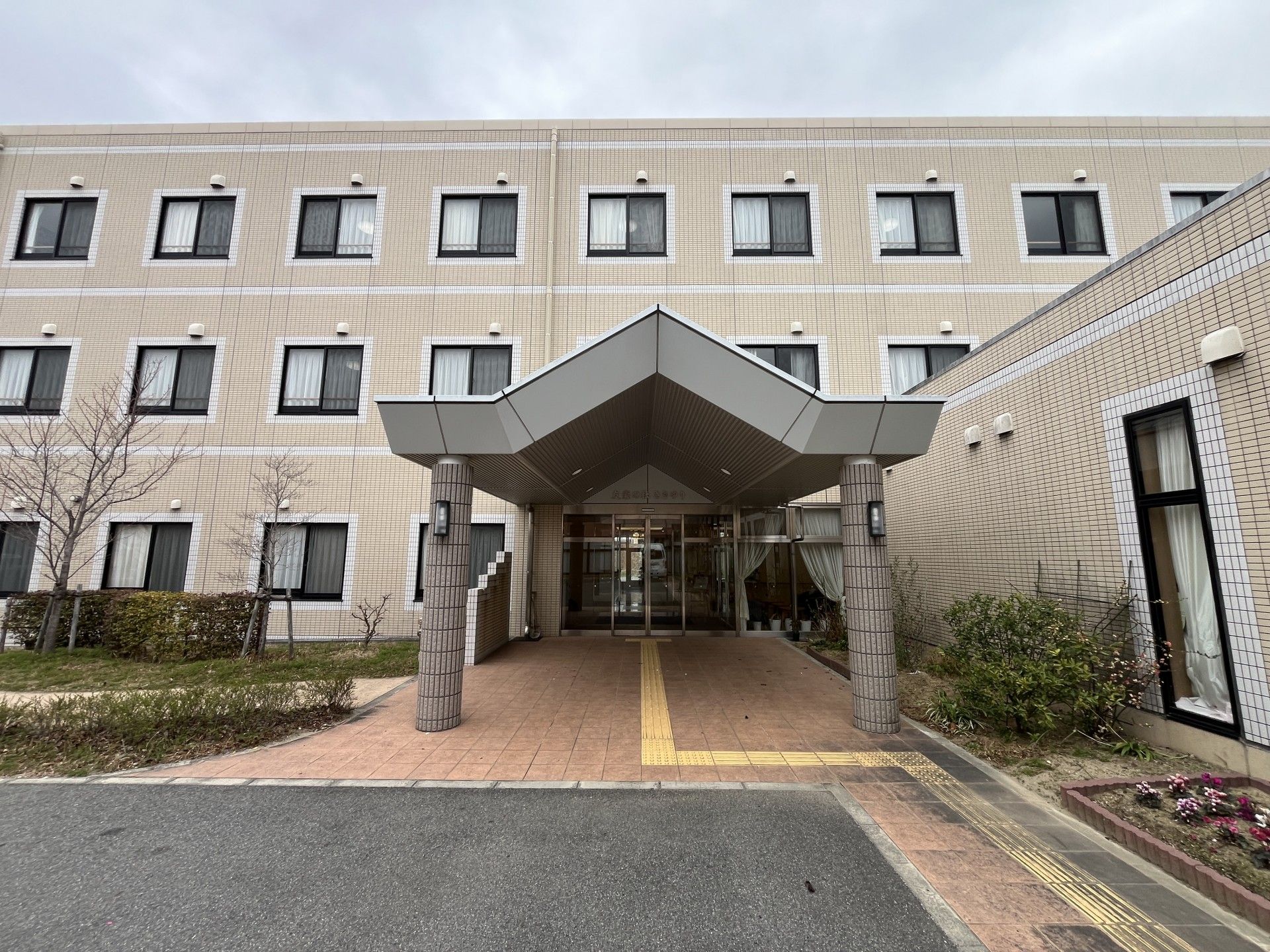 広々とした敷地に立つ建物は、安心感を与える落ち着いたデザインです。