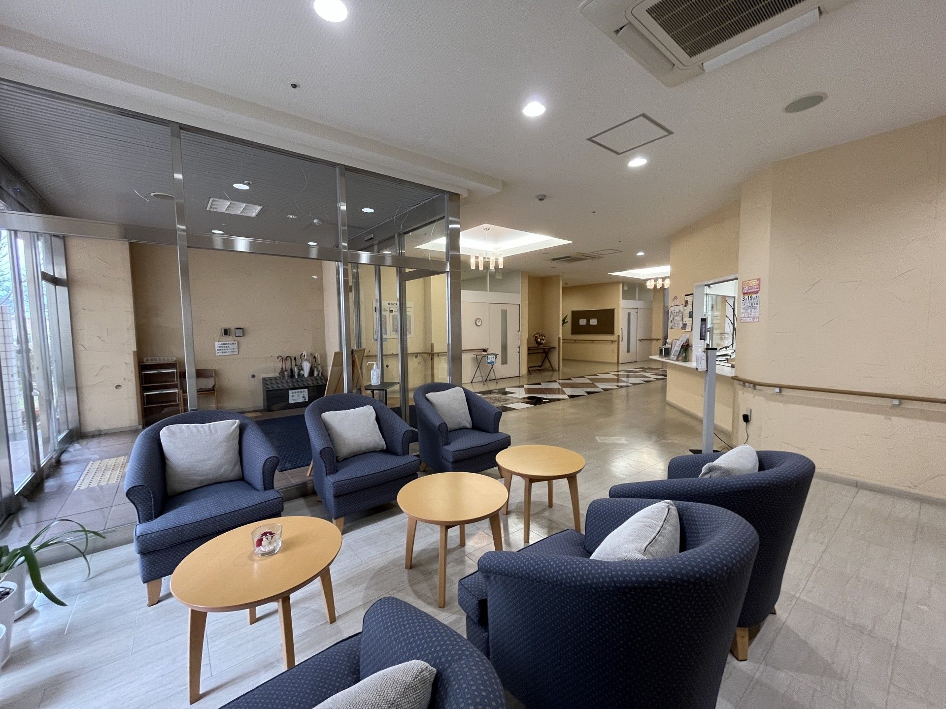広いエントランスは、車椅子でも安心して通れる設計です。明るい雰囲気が迎えてくれます。
