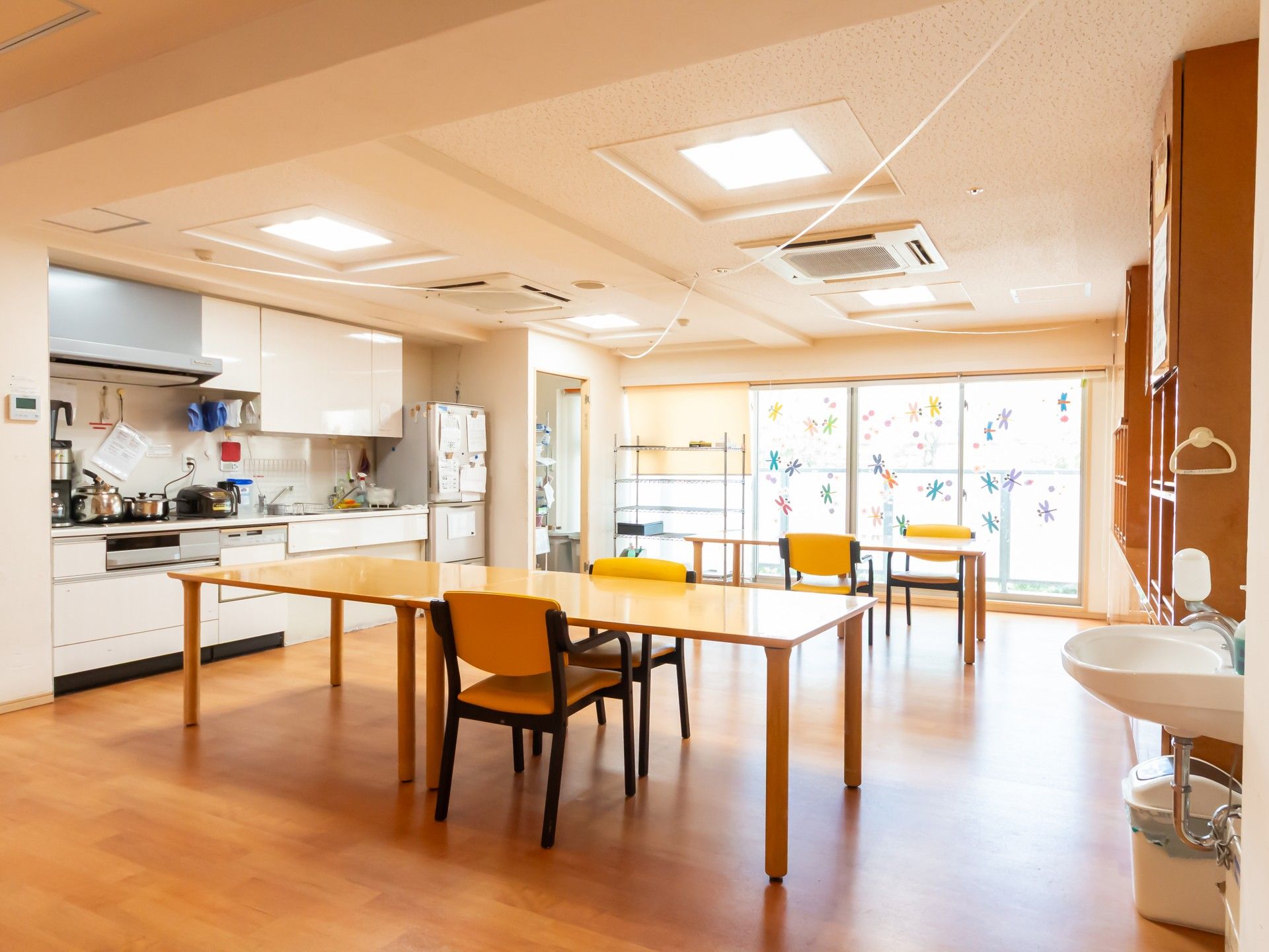 明るく広々とした食堂兼デイルームでは、四季折々の食材を使用した手作りの食事をご提供しています。食事は見て、食べて楽しめる工夫がなされ、ご入居者様の健康面や嗜好にも配慮しています。座ったままでも入浴できる機械浴「ライラック」を導入し、介護度の高い方も安心して入浴を楽しめます。15時のコーヒータイムでは、歌やカラオケ、脳トレクイズ、トランプなどを楽しんでいます。初詣、新年会、節分、お花見、夏祭り、敬老会、クリスマス会など季節のイベントも充実。月1回の誕生日会を兼ねたおやつ作りも好評です。