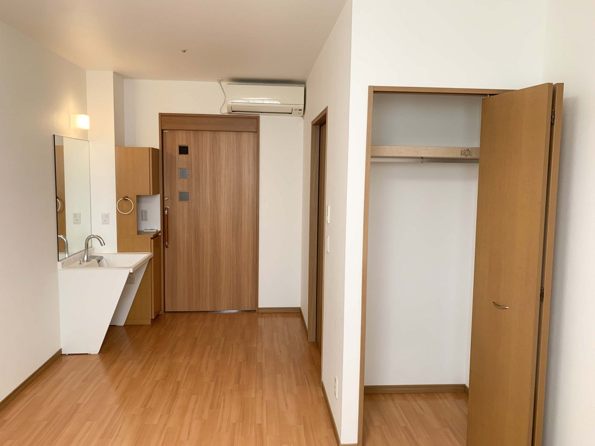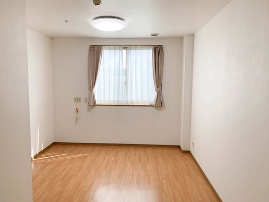 窓からの自然光が心地よい居室です。キッチンも完備されており、日常生活に便利です。