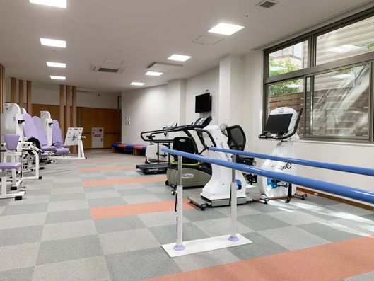 運動機器が整然と並び、体力づくりに最適な環境です。リハビリや健康維持にご活用いただけます。