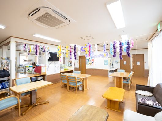 各ユニットには居間、食堂、リビング、台所を設置し、ご入居者様が調理を行える設備も整えています。館内には8か所のトイレ(うち6か所は車椅子対応)と2か所の個浴を完備。併設のデイサービスセンターには特殊浴槽もあり、ご入居者様の心身状況に応じて利用可能です。併設のデイサービスセンター満天の家との合同行事も月に1回以上企画されており、通所されるお客様との交流も楽しめます。ご入居者様それぞれの得意なことを活かした役割を持ち、お一人おひとりのペースを大切にした自由な生活を送っていただいています。