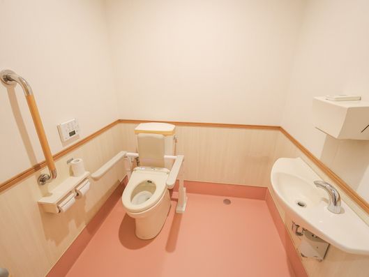 手すり付きで安全に配慮されたトイレです。ご自身のペースで快適にお使いいただける環境を整えています。