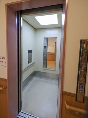 広々とした入口が迎える、心地よい雰囲気の建物です。バリアフリー設計で、どなたでも安心してお過ごしいただけます。