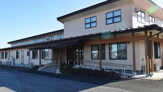 施設は広い舗装された敷地の中に建つ2階建てです。一般住居のような屋根のある建物で、出入り口にスロープと小さめの階段があります。