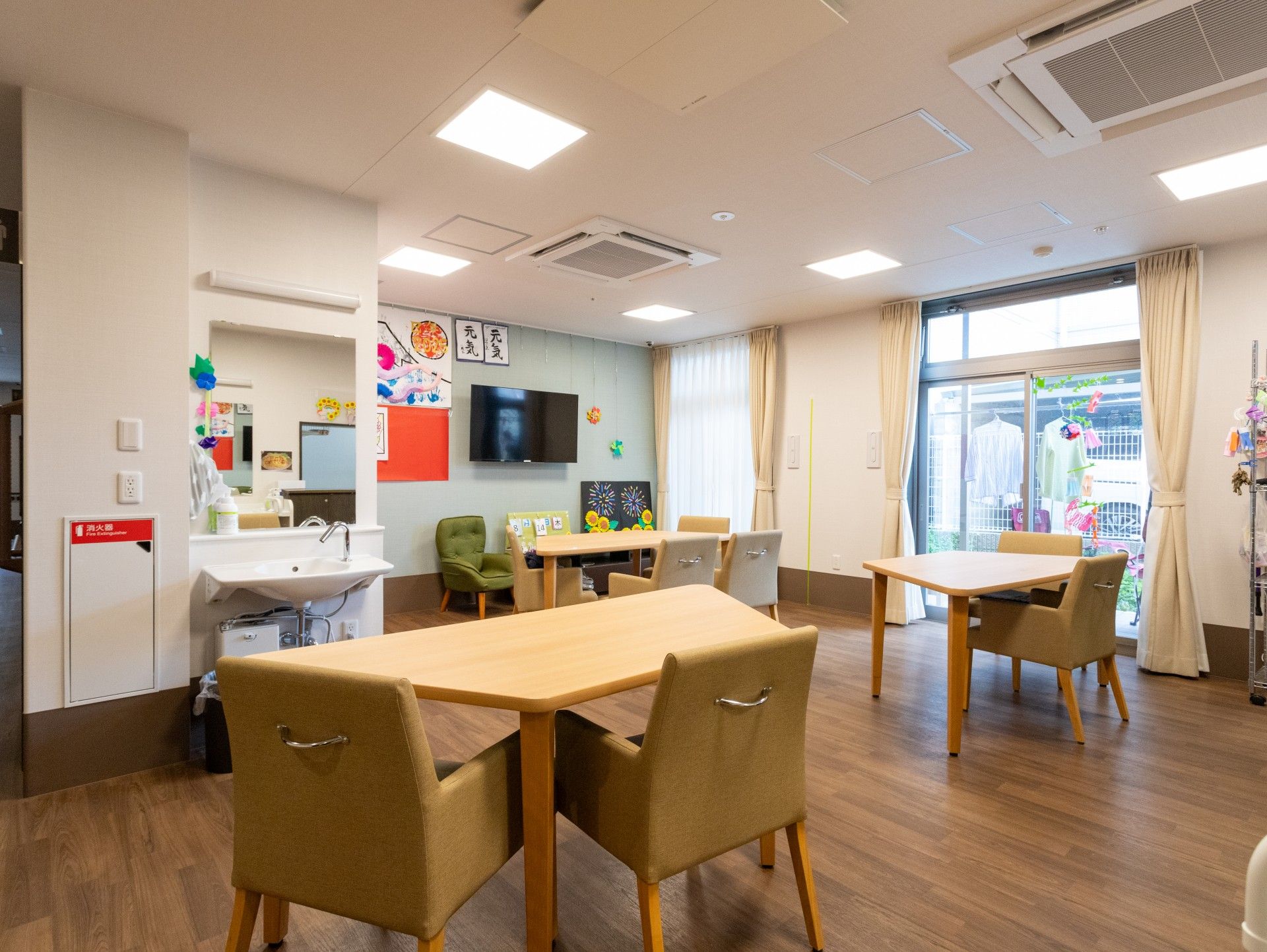 家庭的でゆったりとくつろぐるスペースをご用意。入居者様同士とコミュニケーションを行いながら、お食事の時間をお楽しみいただけます。
