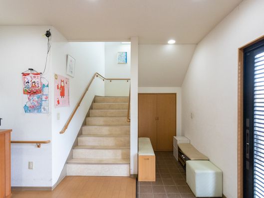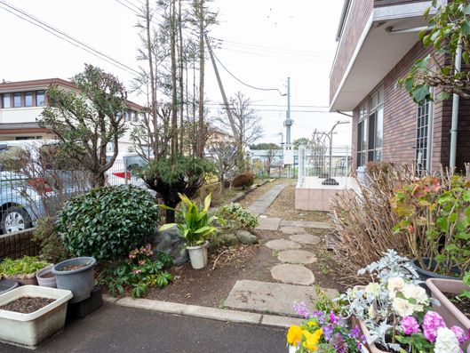 手すり付きのスロープが設置されており、歩行に不安がある方も安心して出入りできる設計です。