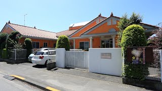 オレンジのおしゃれな外観を取り囲むように樹木が植えられ、豊かな自然を感じることができると共に、プライバシーにも配慮しています。