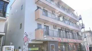 「花かんざし ちんとんしゃん」では、手書きのような文字で4階建ての建物に直接名前が書かれてあります。各部屋にはベランダがついていますので、外の様子が窺えます。