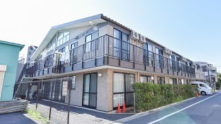 茶色を基調とした、落ち着いた雰囲気の建物です。エントランスの前は駐車スペースの為、車から歩かずに入室することができます。
