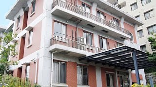 • 3階建ての建物は白とブラウンで各フロアにベランダが付き、玄関には屋根が付いている。