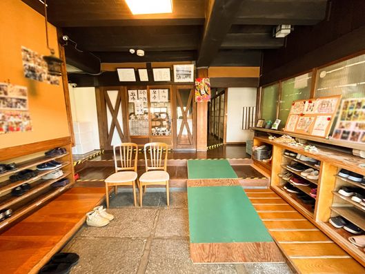 伝統的な雰囲気の玄関で、靴を脱いでスリッパに履き替えることができます。日々の生活に安らぎを提供する空間です。