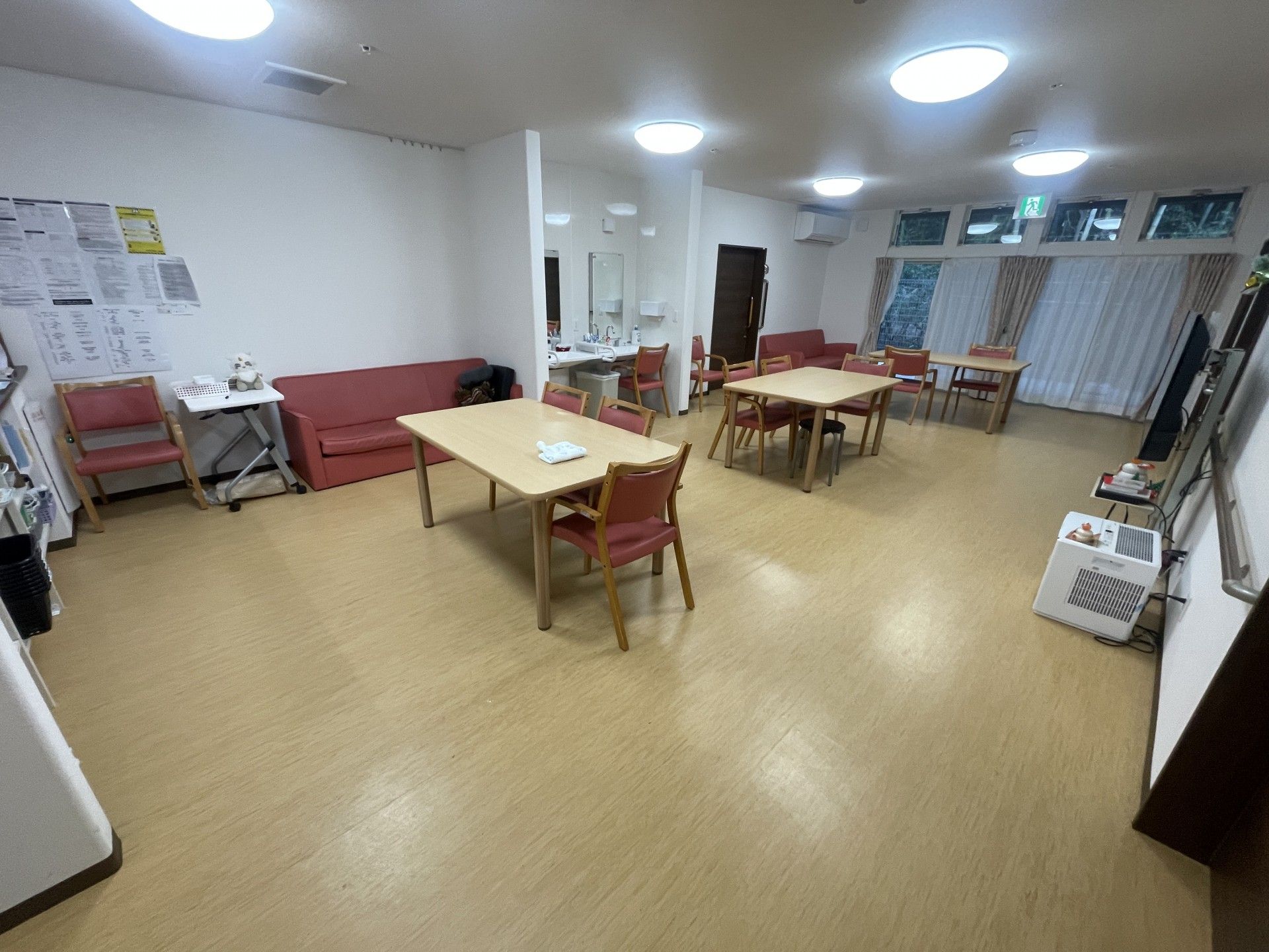 ゆったりとした佇まいの建物は、バリアフリー設計となっており室内は広々として開放的です。各居室にはプライベートスペースが設けられ、安らげる空間となっています。またリビングやデイルームといった共有スペースでは、ご家族様を交えた行事やレクリエーション等が催され、ご入居者様同士の交流の場となっております。毎日がゆったりとしたペースで過ごせ、温かみのある家庭的な環境作りを心がけています。