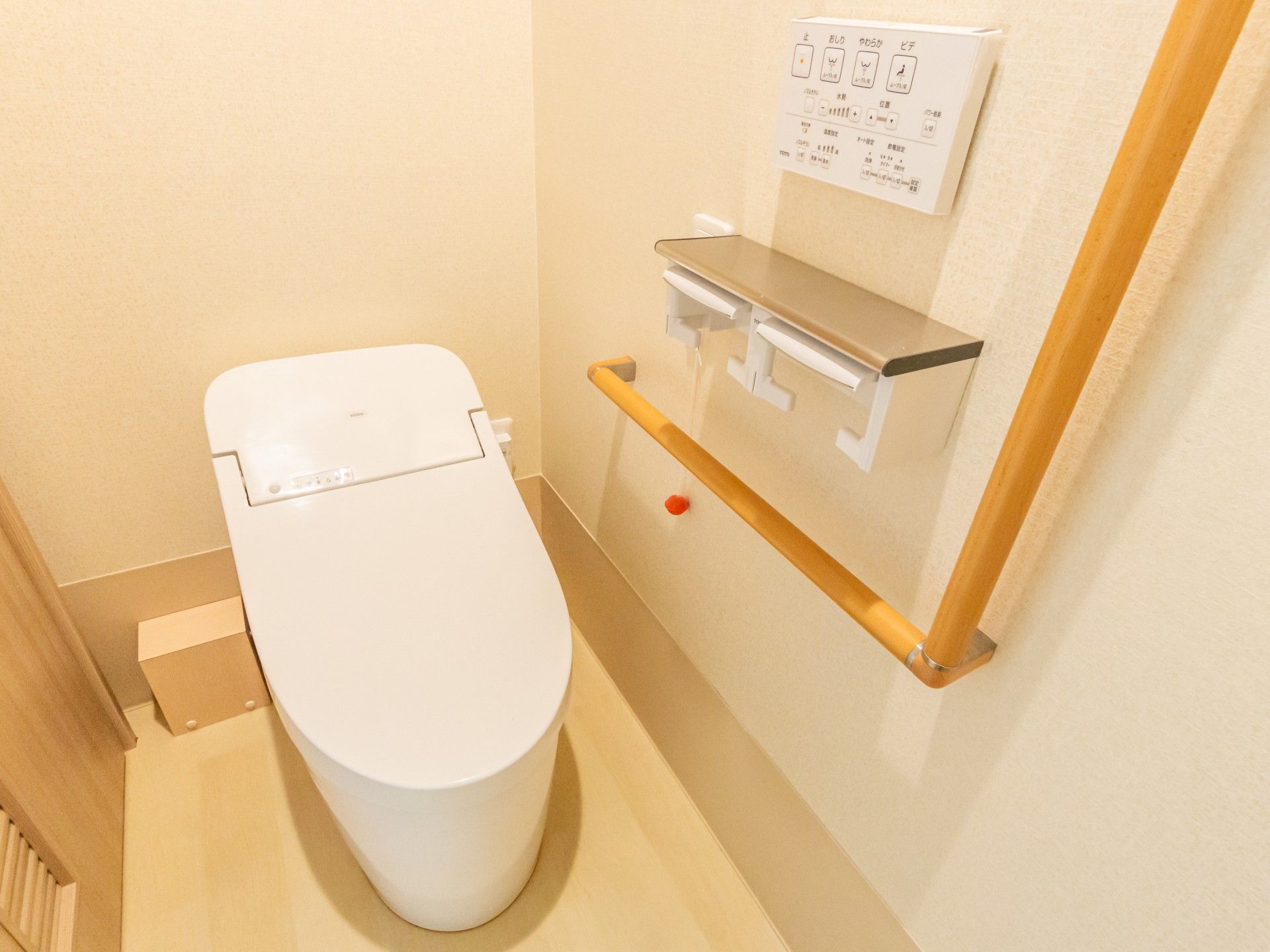 手すりが設置されたトイレは、安全に配慮されており、安心してご利用いただけます。