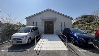 • 外壁を真っ白に塗られた清潔感溢れる外観である。玄関まではスロープが伸び、車椅子専用車の駐車スペースがある。