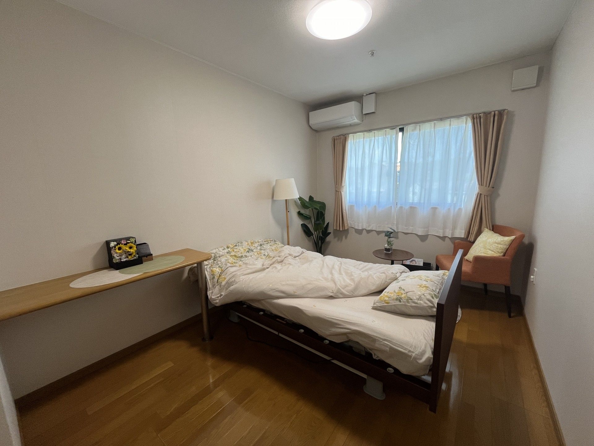 ご入居者様一人ひとりの介護度に合わせて受け入れをいたします。個室・ユニット型の居室で、プライバシーを大切にしながらも、ご家族様に寄り添ったサポートを心がけております。居室にはベッド、クローゼットが完備され、静かな空間でゆったりとお過ごしいただけます。介護が必要になっても、安心して生活できる環境を提供いたします。