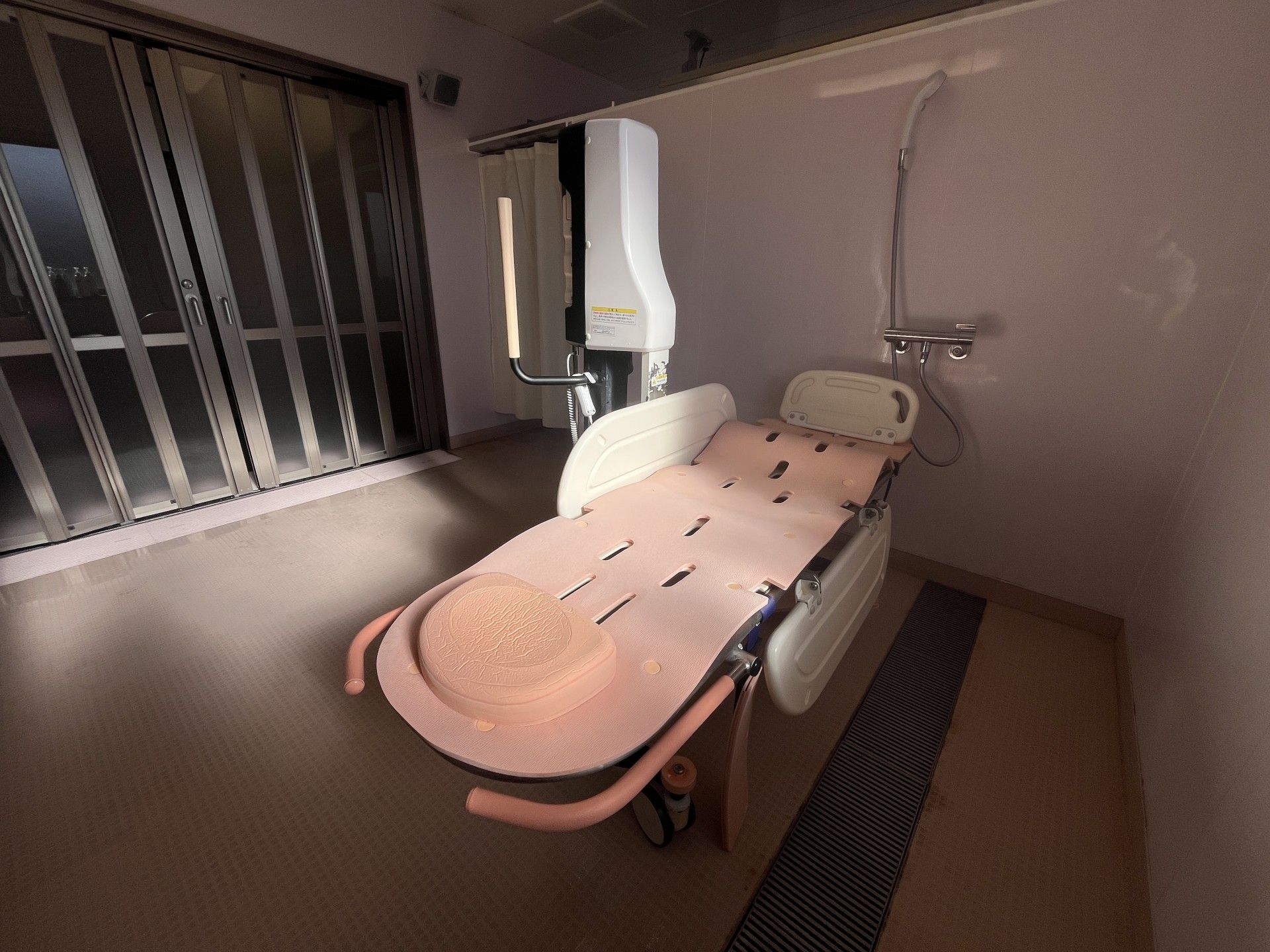 ご入居者様にとっても介助に当たるスタッフにとっても負担の少ない機械浴。温かいお湯に浸かることで、体の緊張もほぐれるでしょう。